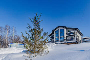 На территории имеется летняя открытая терраса площадью 60 кв. м, оборудованная мебелью и лежаками из ротанга, а также шатром для уединения и отдыха на свежем воздухе.