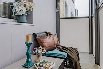 • Уютная лоджия с панорамными окнами и потрясающим видом на город